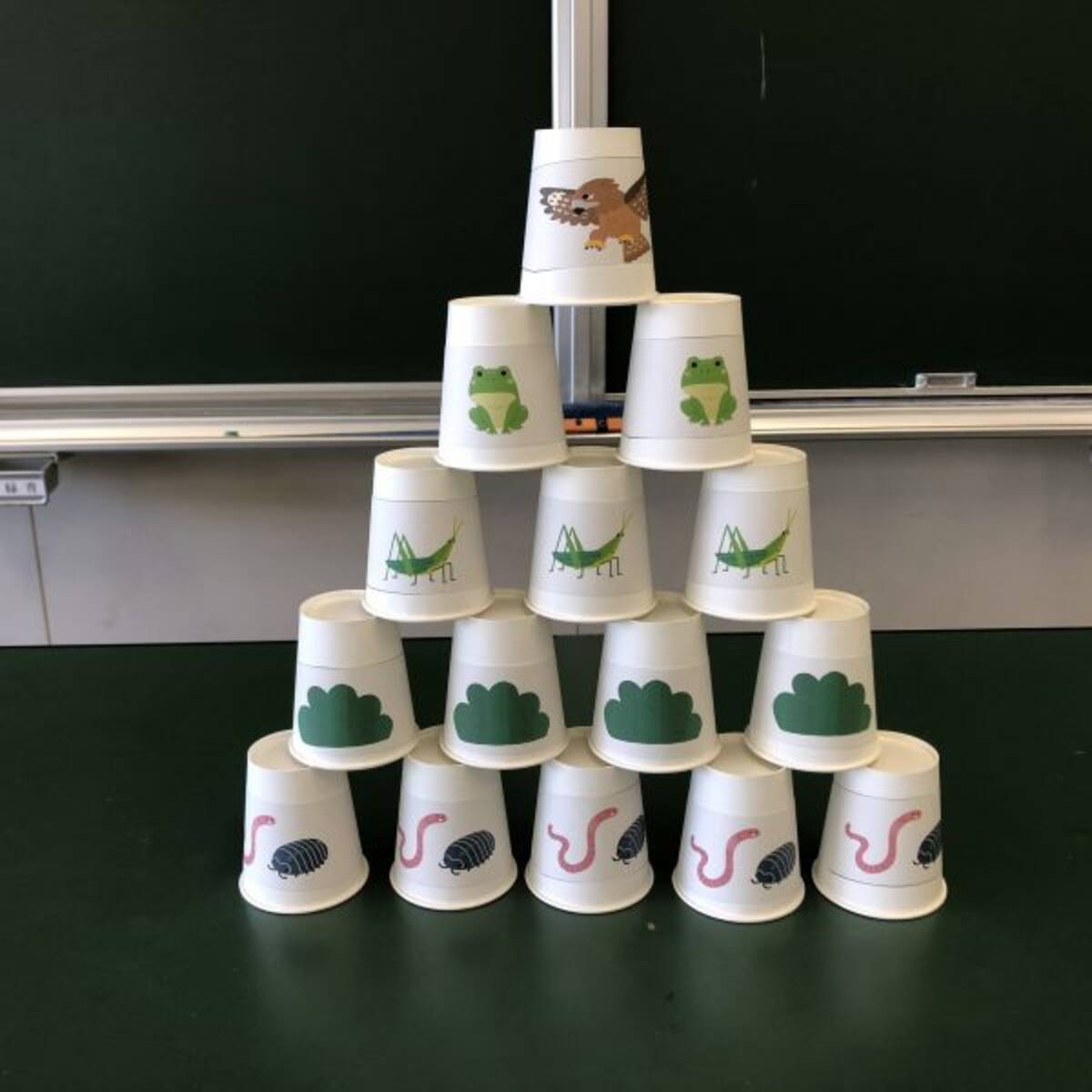 互いの支え合う関係がよく分かる 紙コップで作る 食物連鎖ピラミッド が話題 おたくま経済新聞